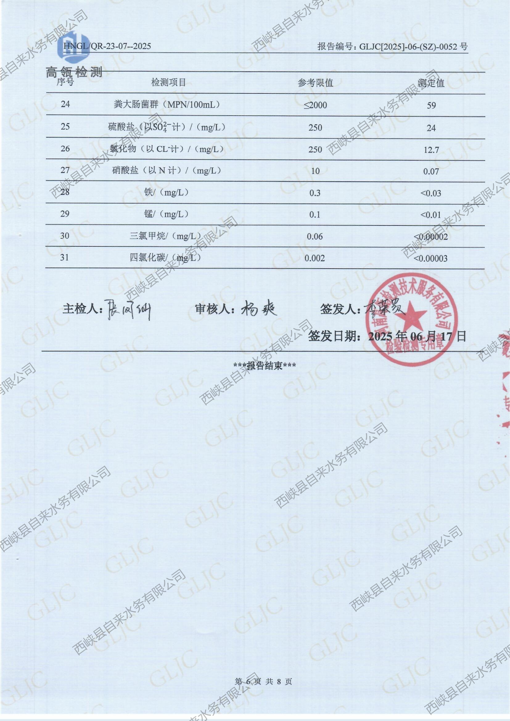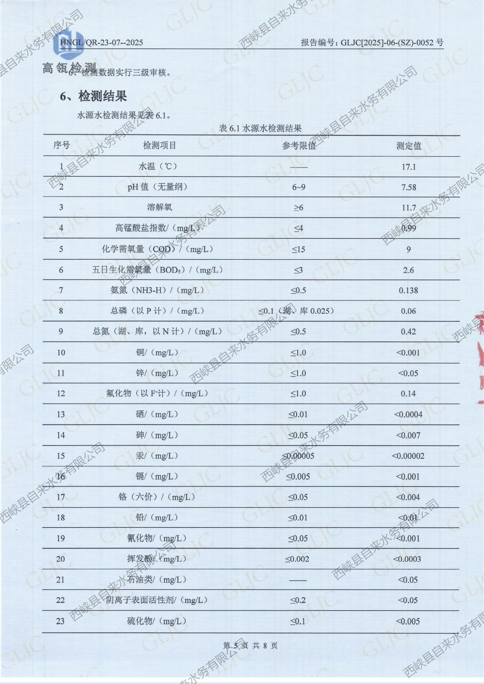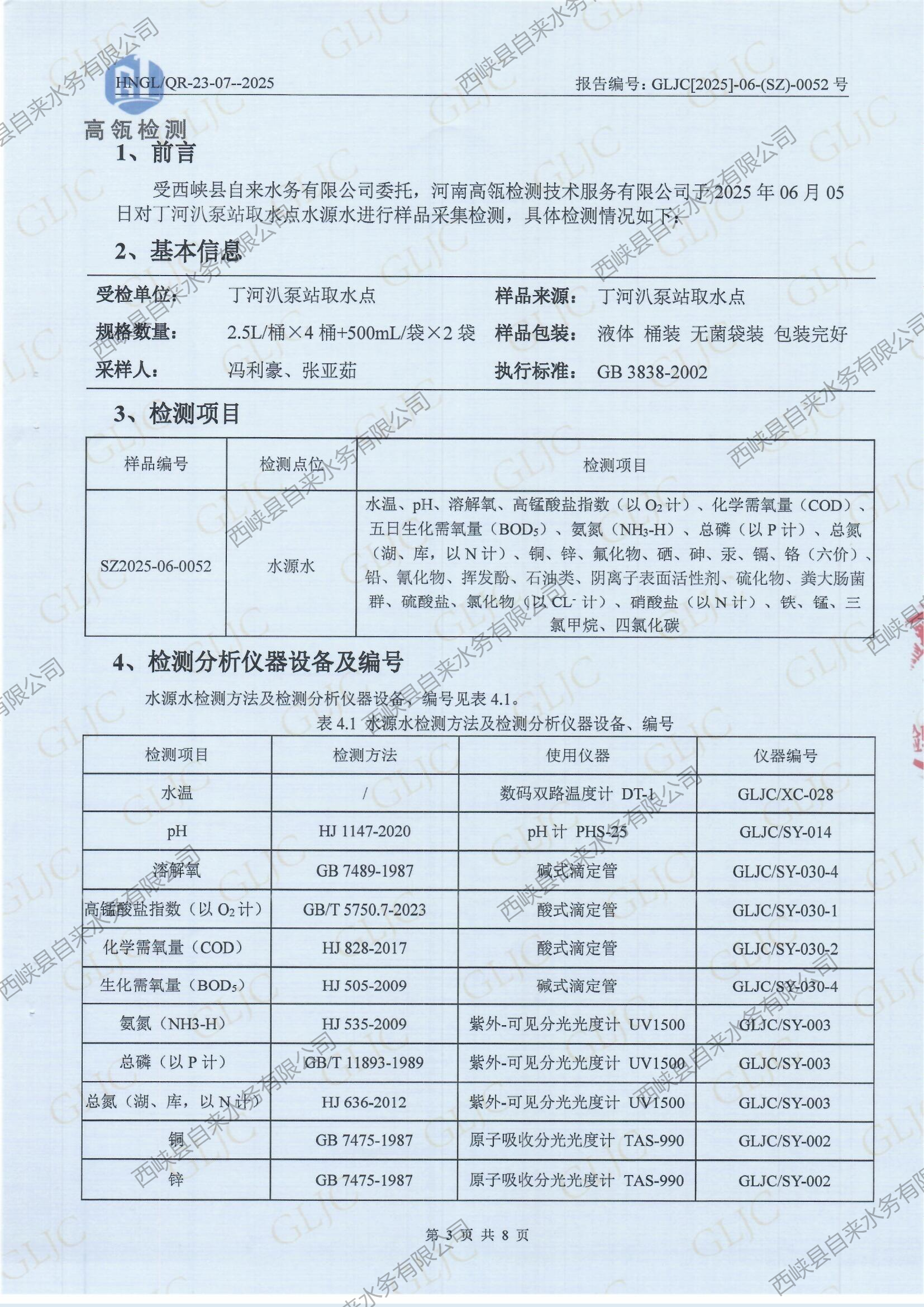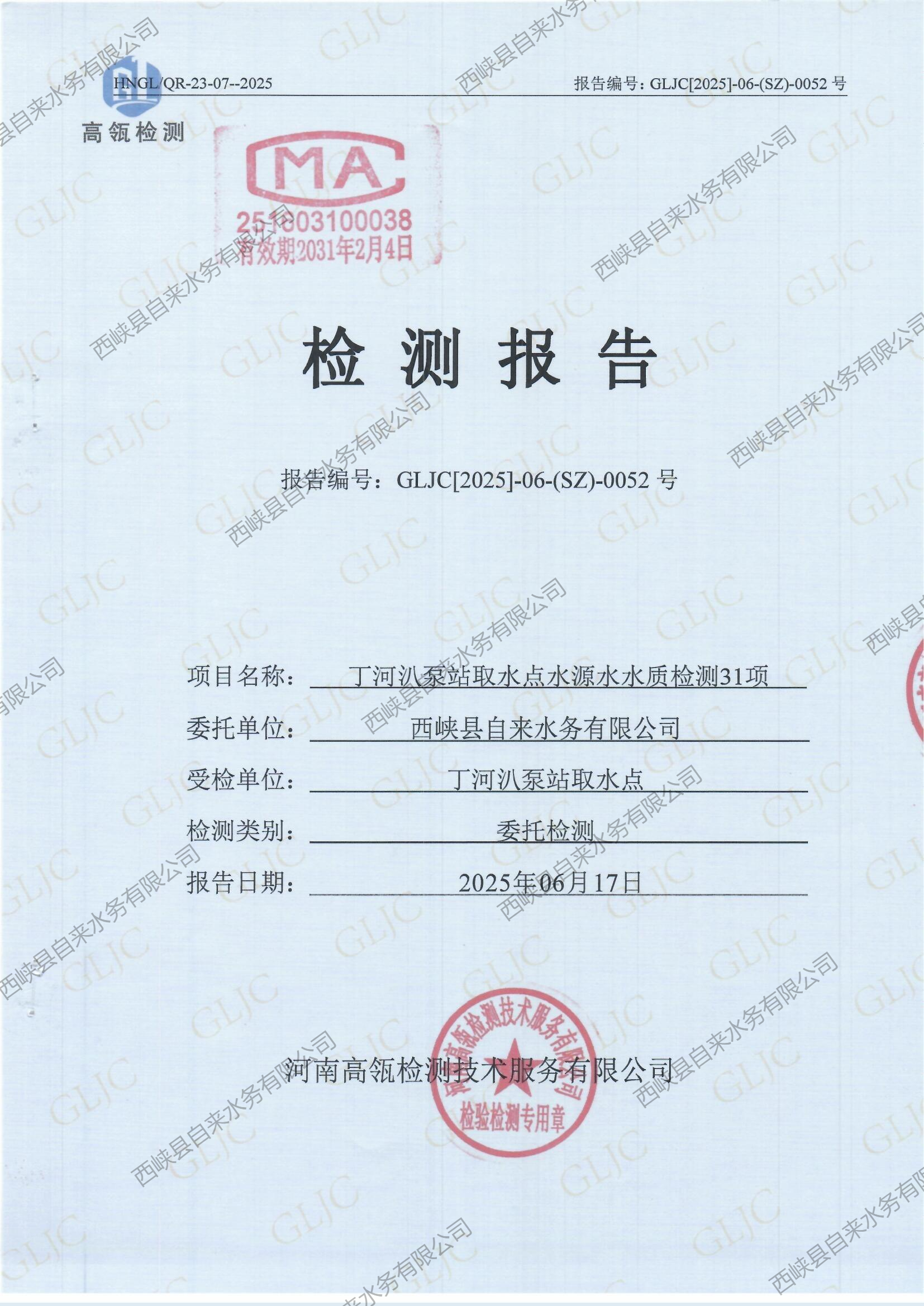 生活饮用水检测报告(水源水丁河)2025-06