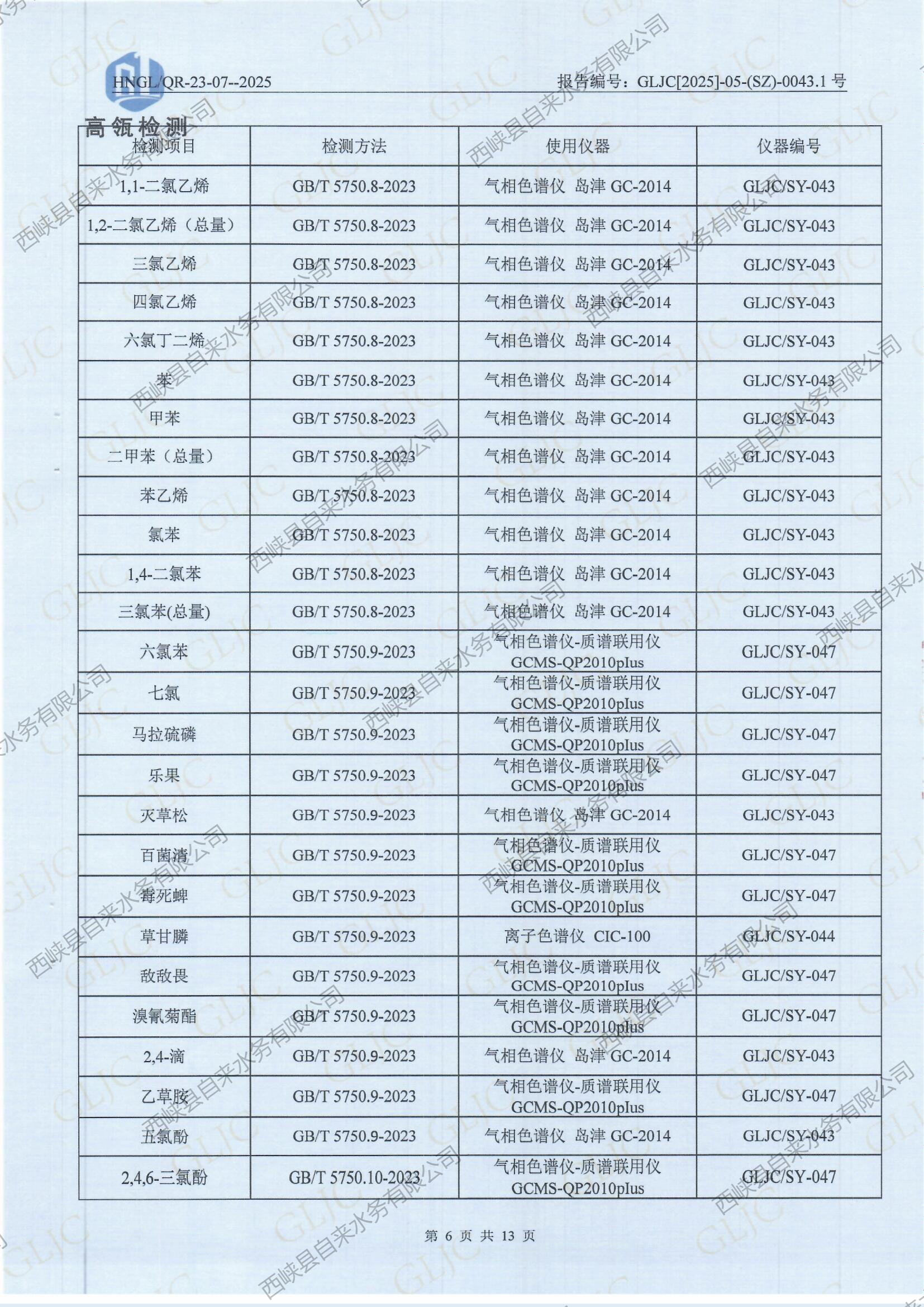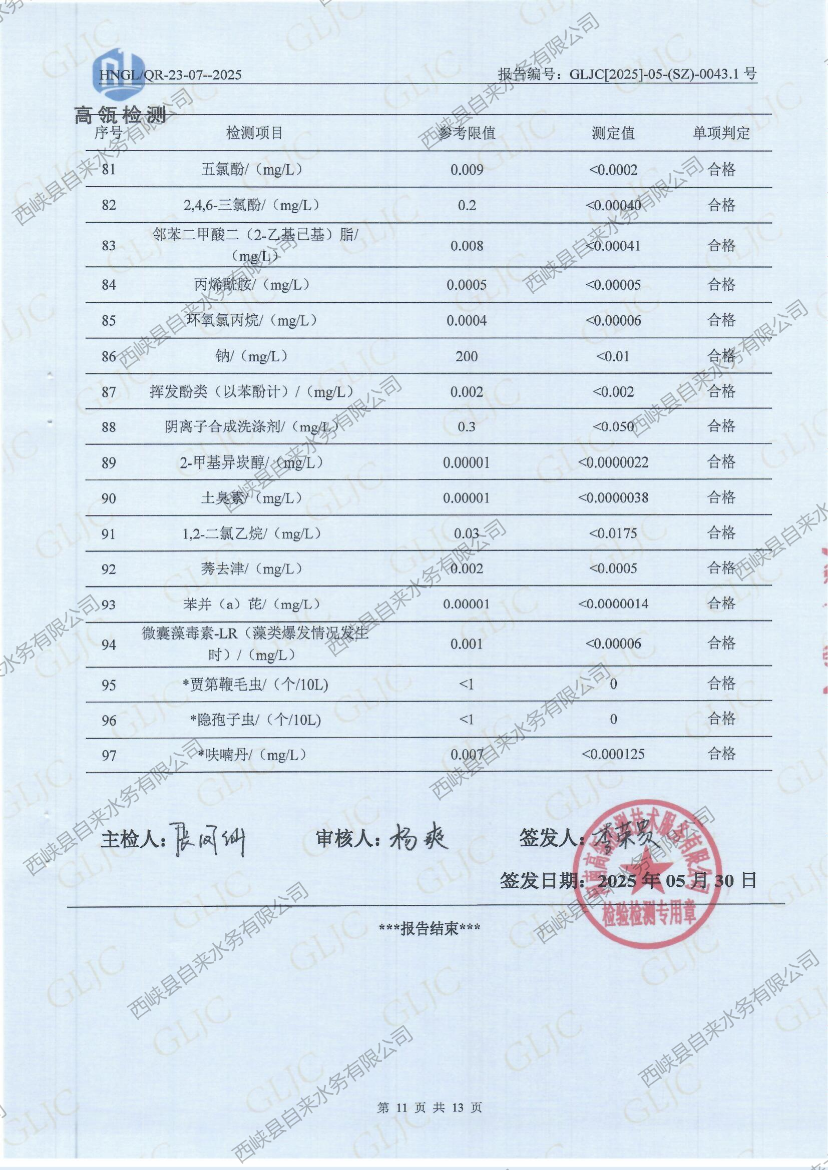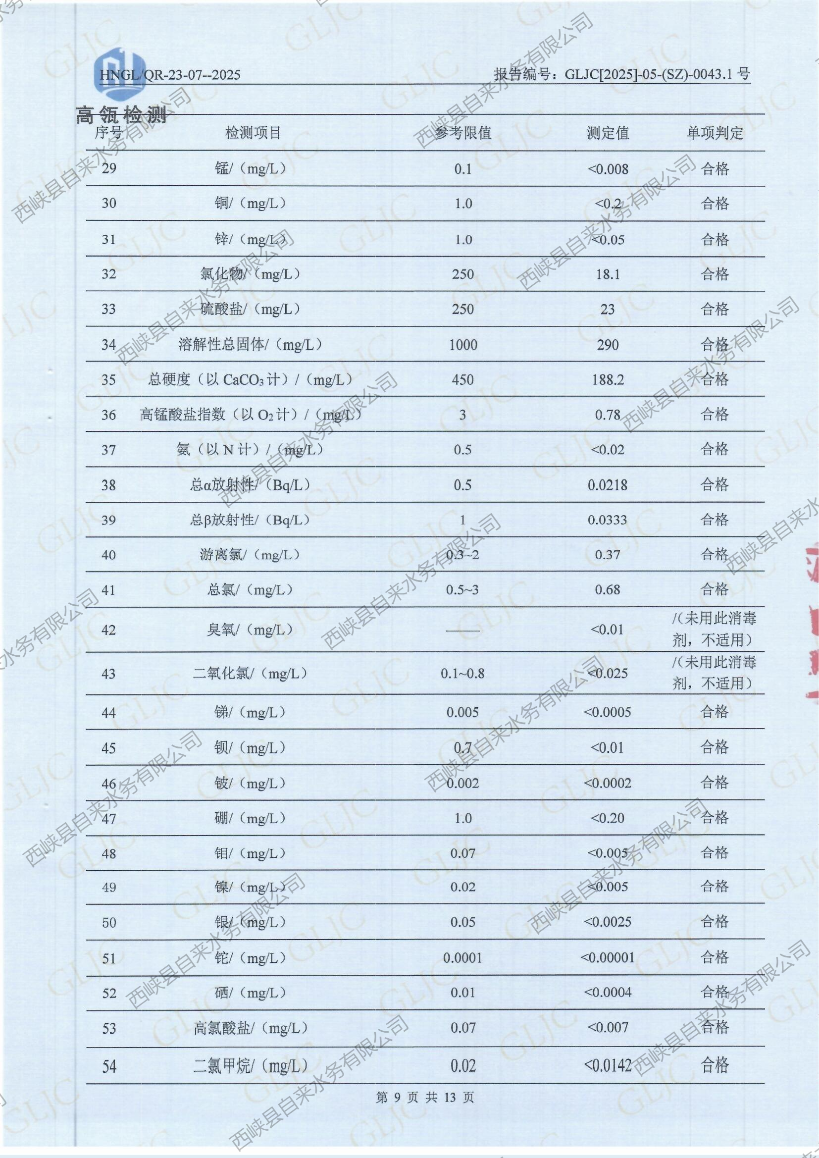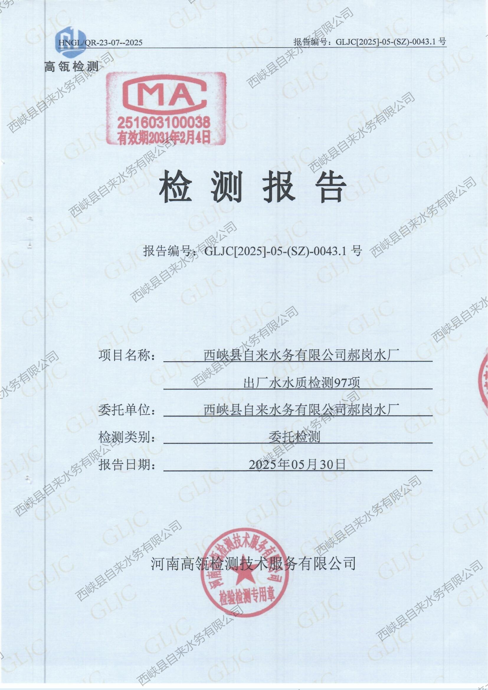 生活饮用水检测报告(出厂水年检97项)2025-06
