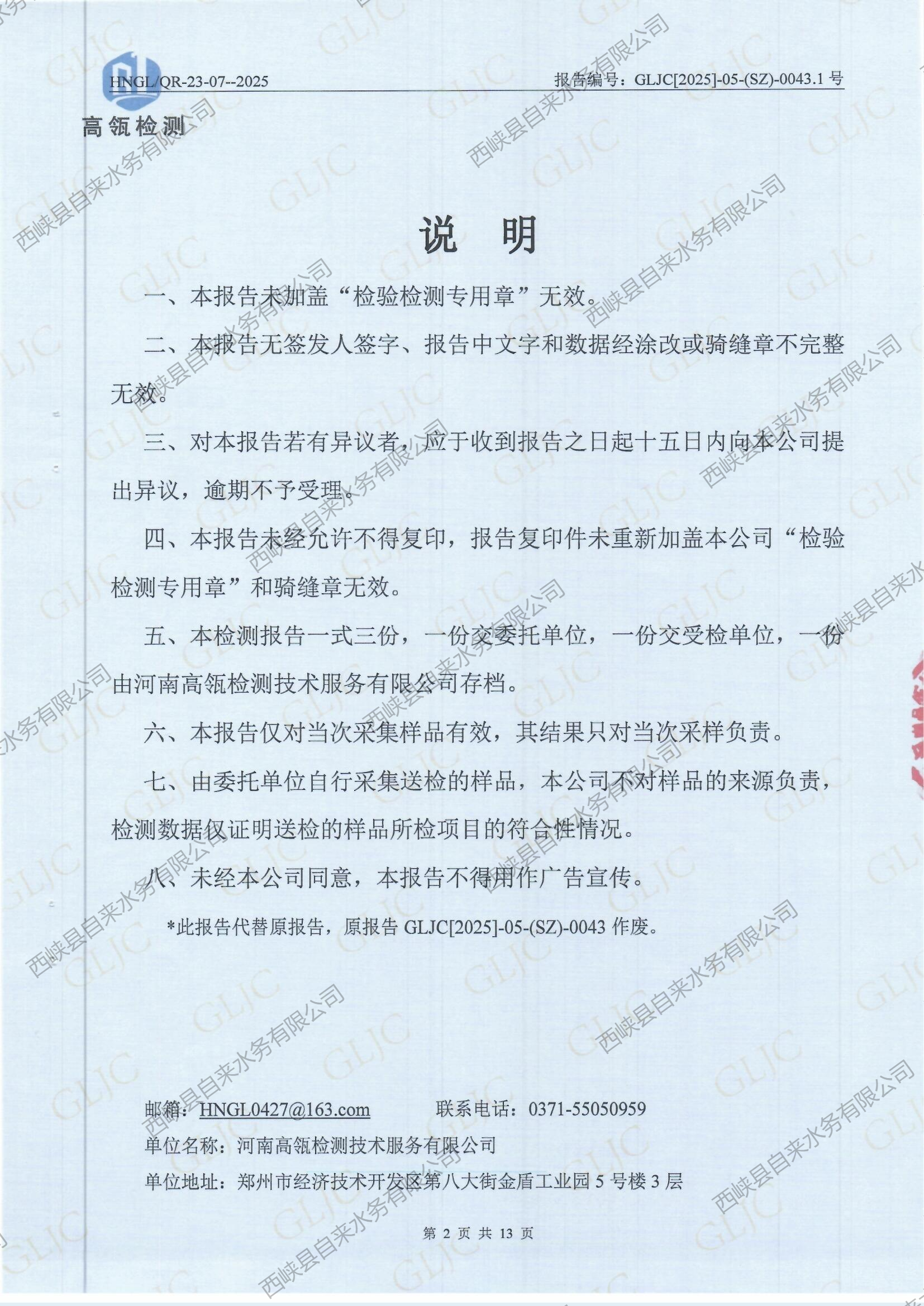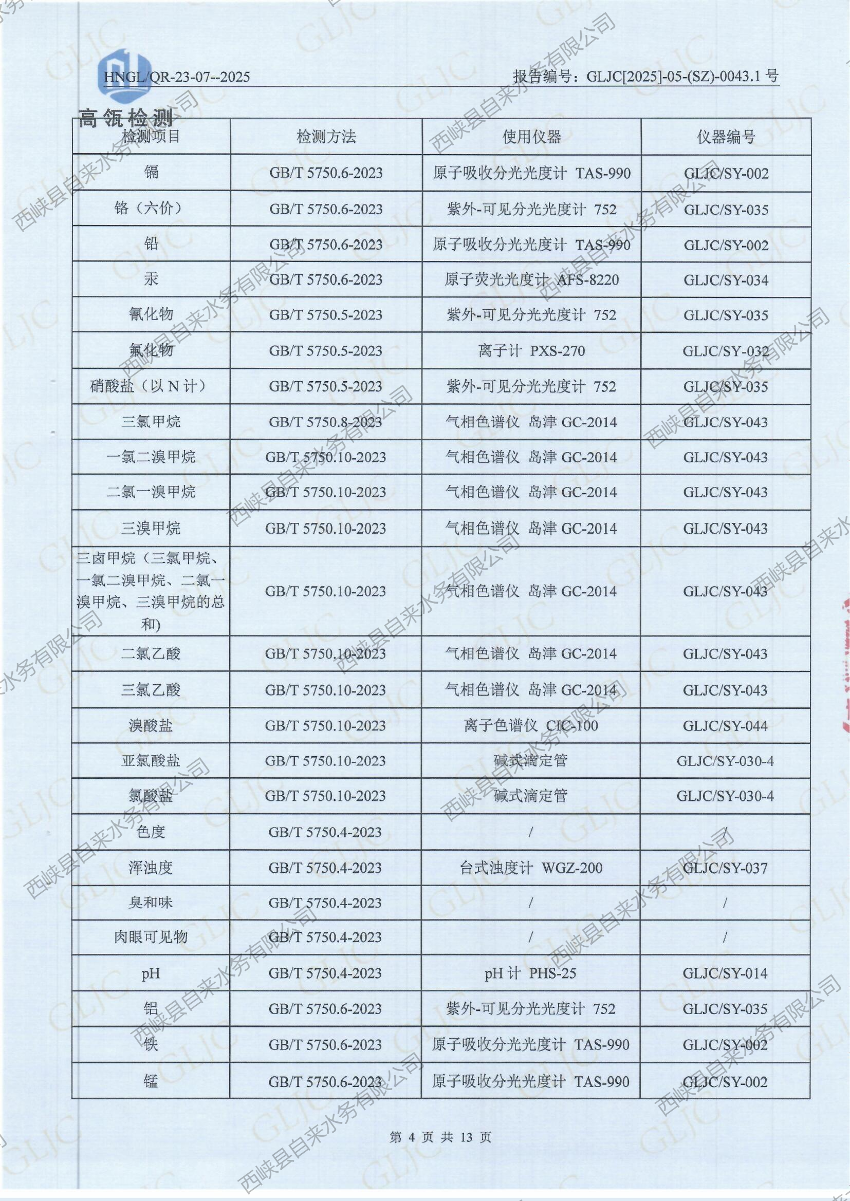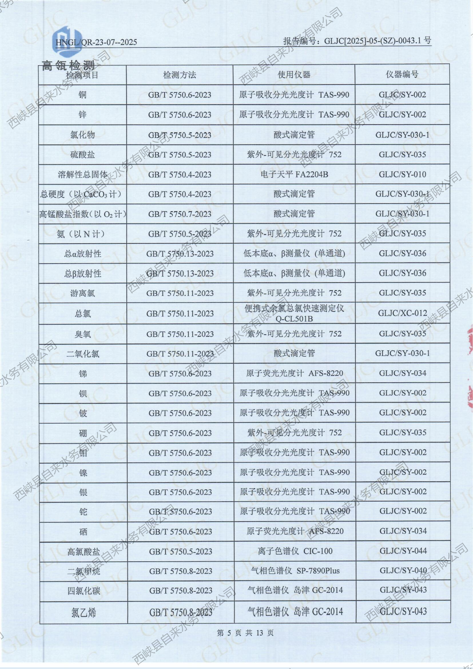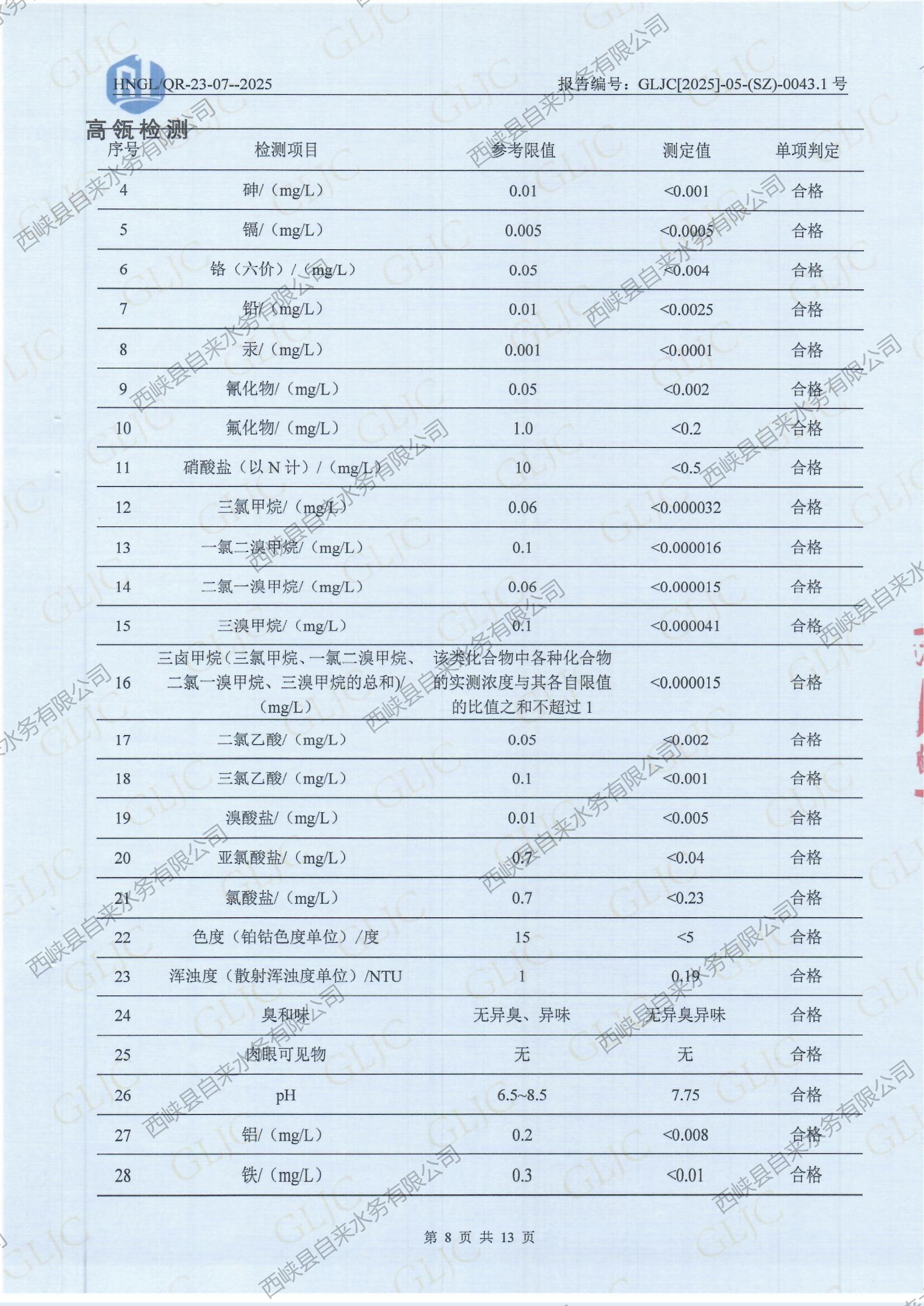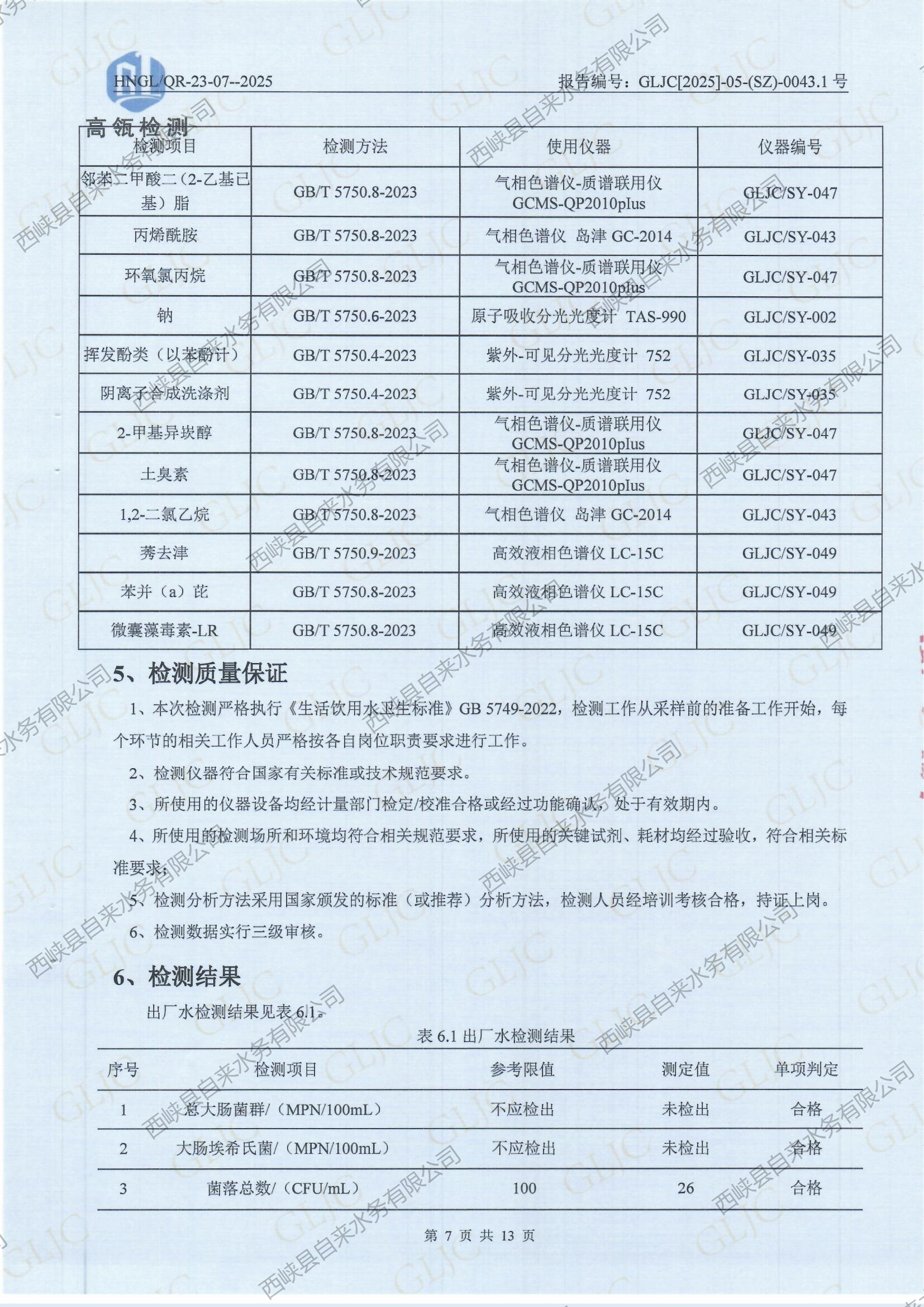 生活饮用水检测报告(出厂水年检97项)2025-06