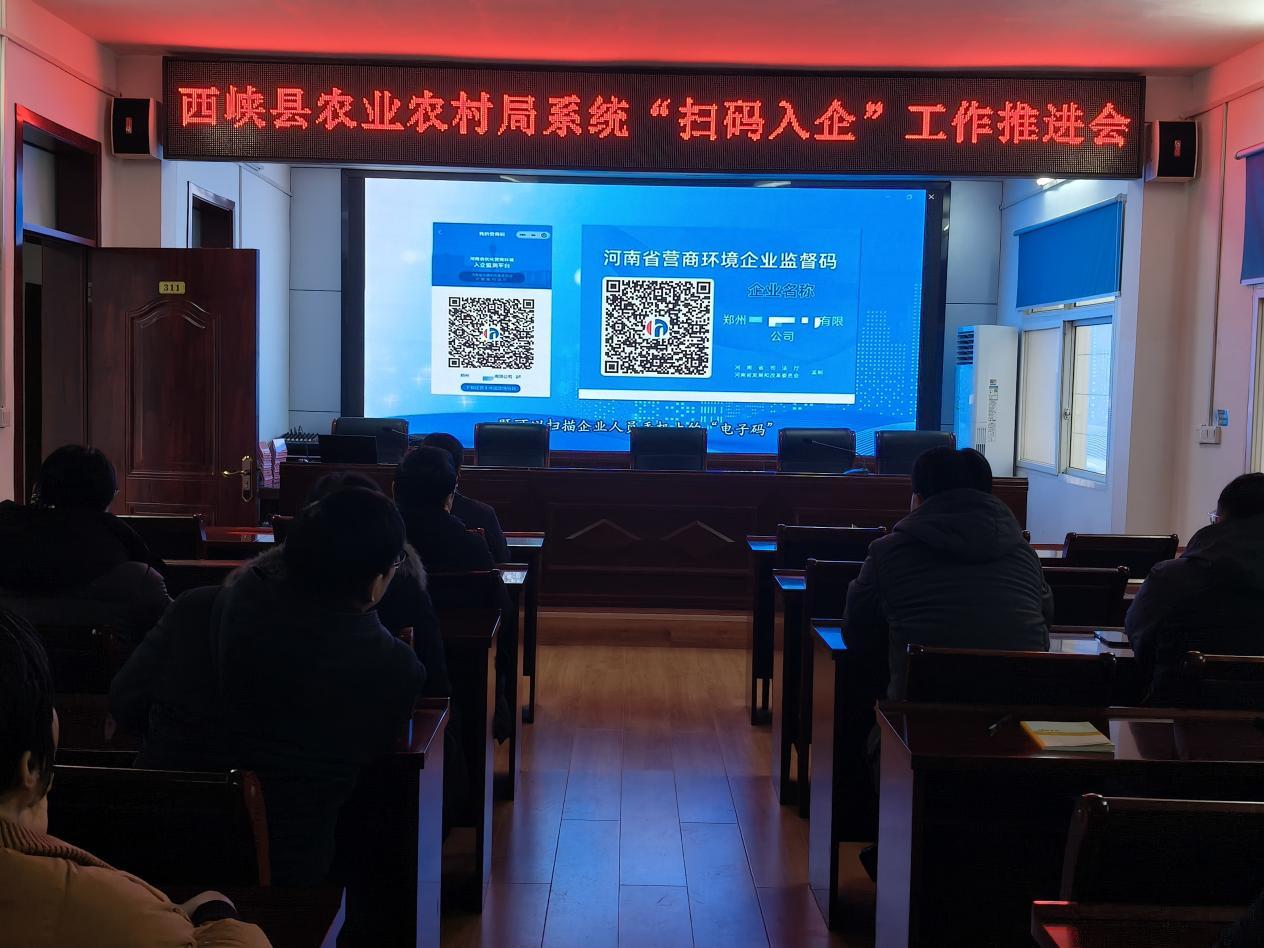 为贯彻落实全省“扫码入企”工作视频会议精神,2026年1月29日上午,西峡县农业农村局组织系统各二级单位、机关相关股室及执法大队、动监所两个主要涉企执法单位负责人参加的“扫码入企”工作推进会。会前观看了“扫码入企”培训课件及视频,局主抓副职和法规股负责同志到会培训和讲话,局主抓副职对当前工作进行安排:一是各单位明确“扫码入企”工作的领导和平台实操员,做到有人抓,有人干;二是广泛宣传“扫码入企”工作的重大意义,进一步规范执法行为、优化营商环境、强化执法监督,建立亲清的政商关系,动员企业、门店扫描“豫企码”;三是适度把握执法检查频次,提高工作效能,做到“检查少了不行、红码多了也不行、检查过多还不行、不检查更不行”;四是明确要求农业综合行政执法大队和动物卫生监督所2月6日前完成2026年度拟执法检查企业门店名单及事项清单,为平台录入做准备,为下步备案审批打基础。确保农业农村领域执法检查公开、公正、透明,提高使用频率。营造良好企业营商环境。