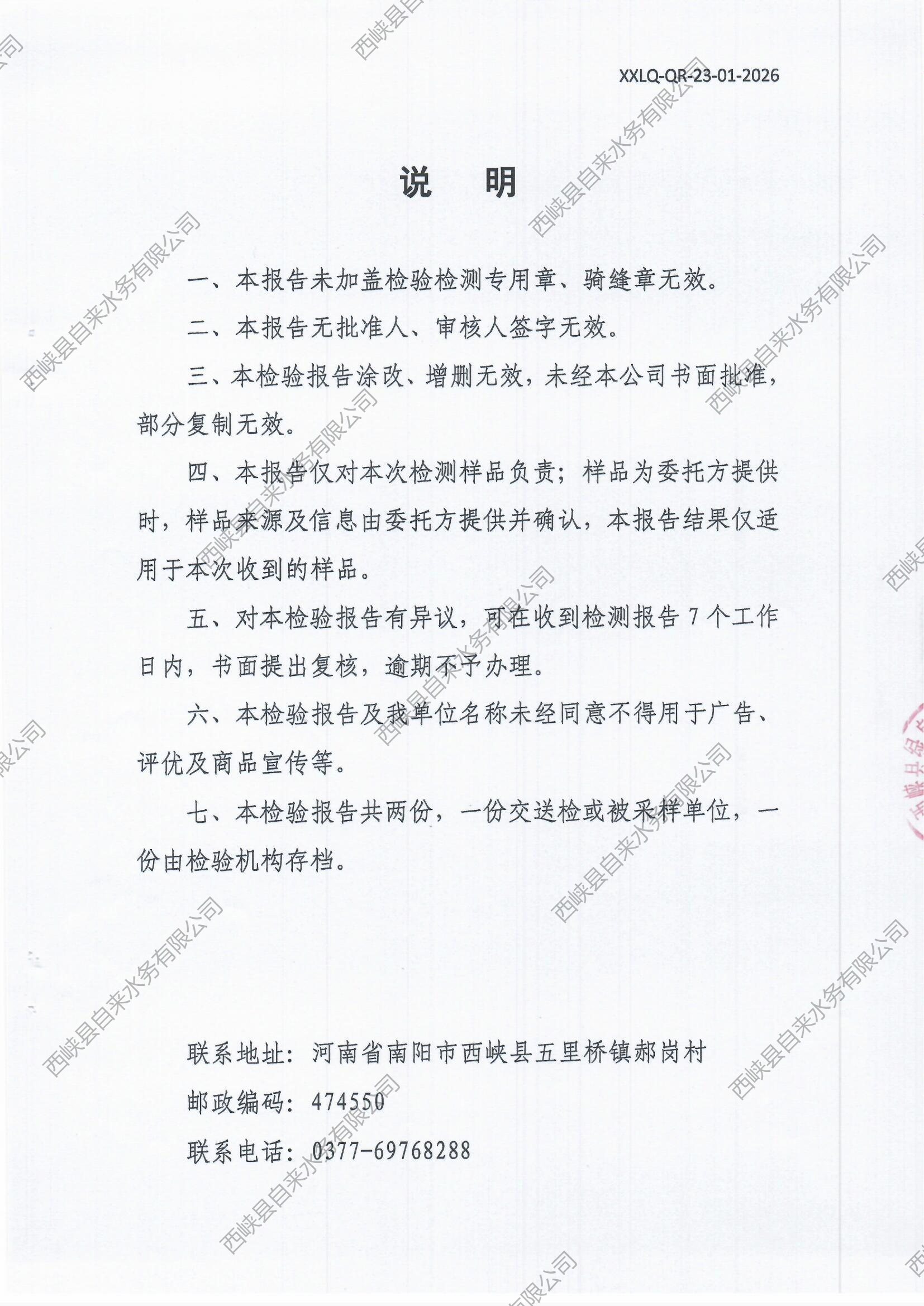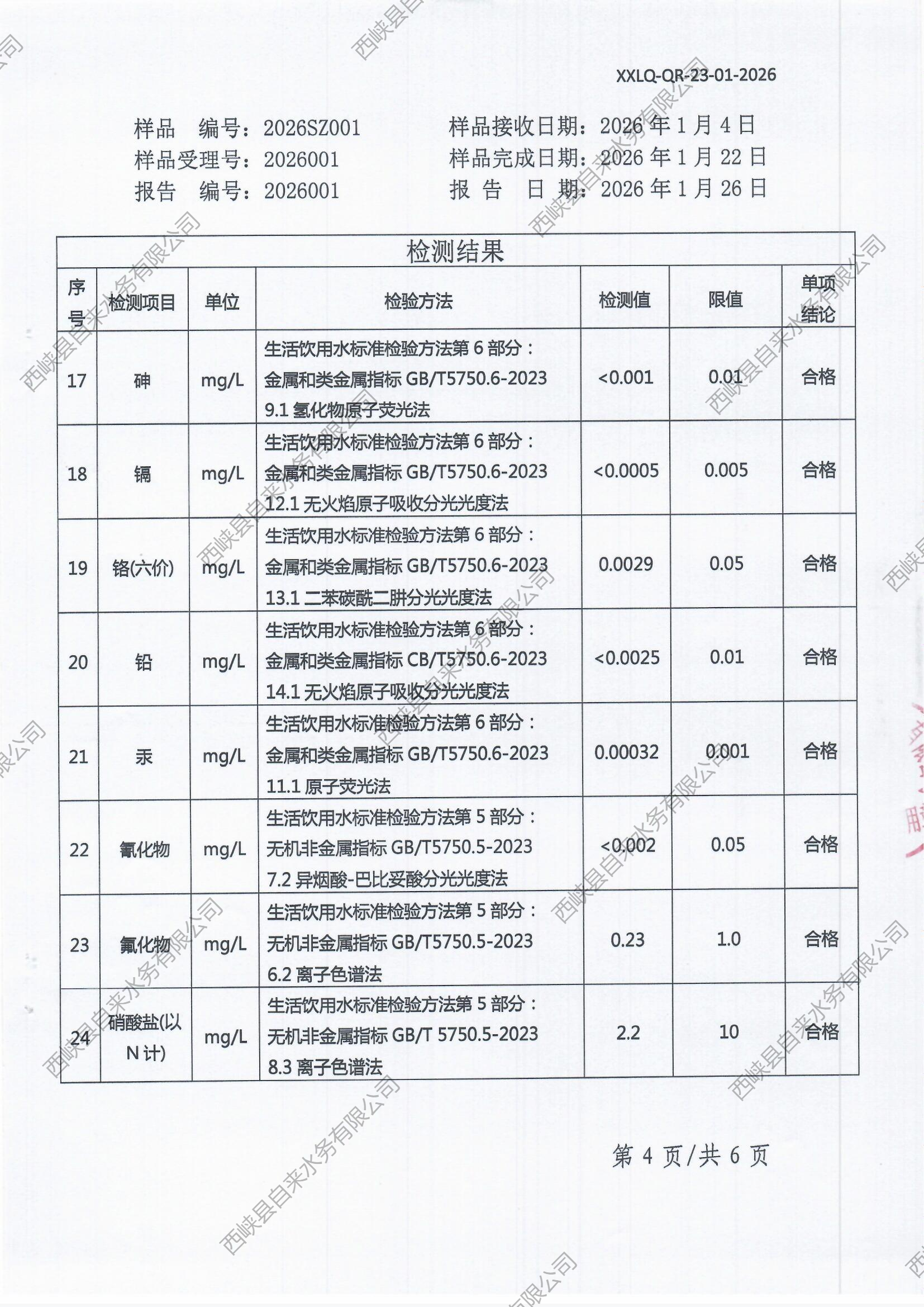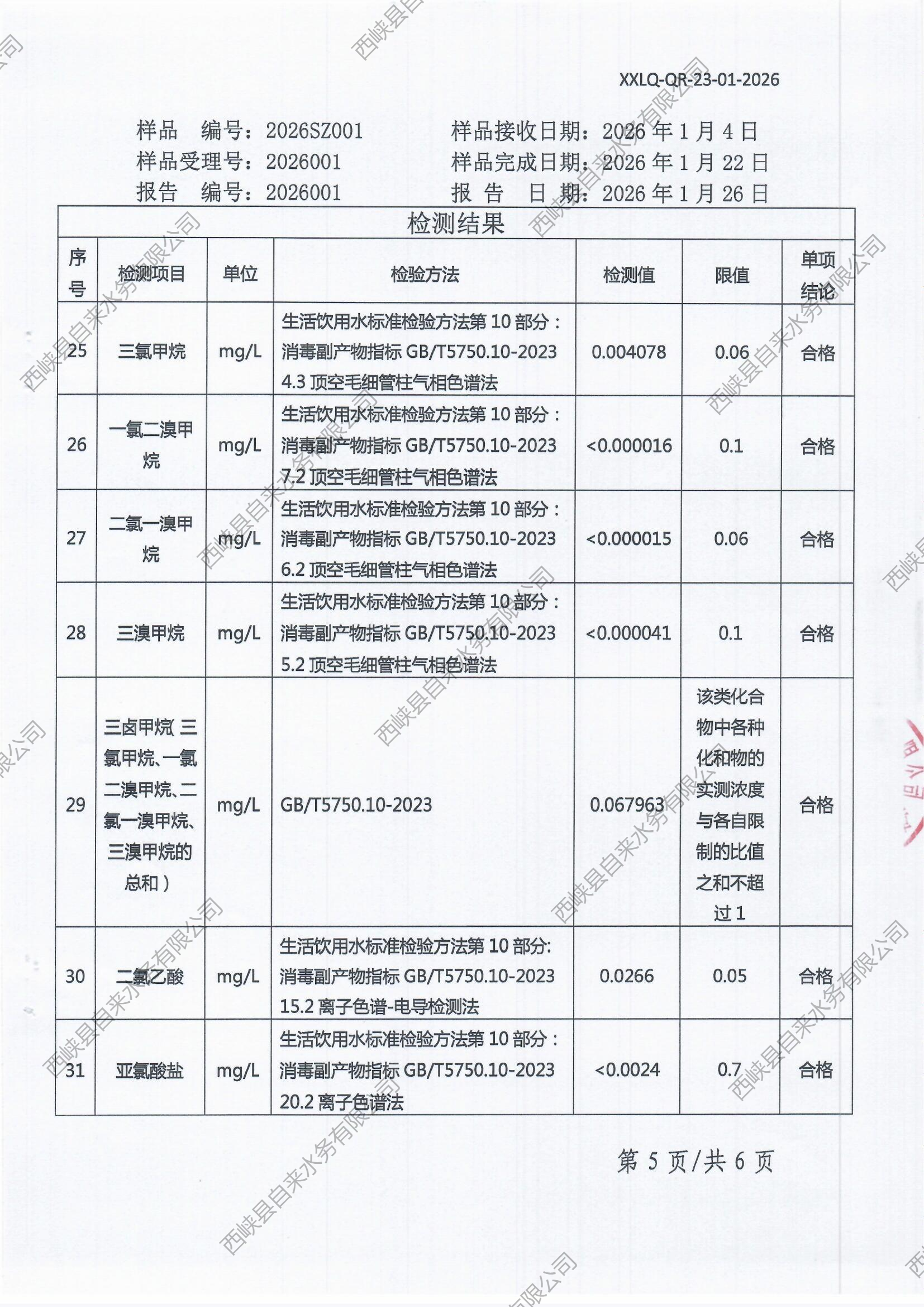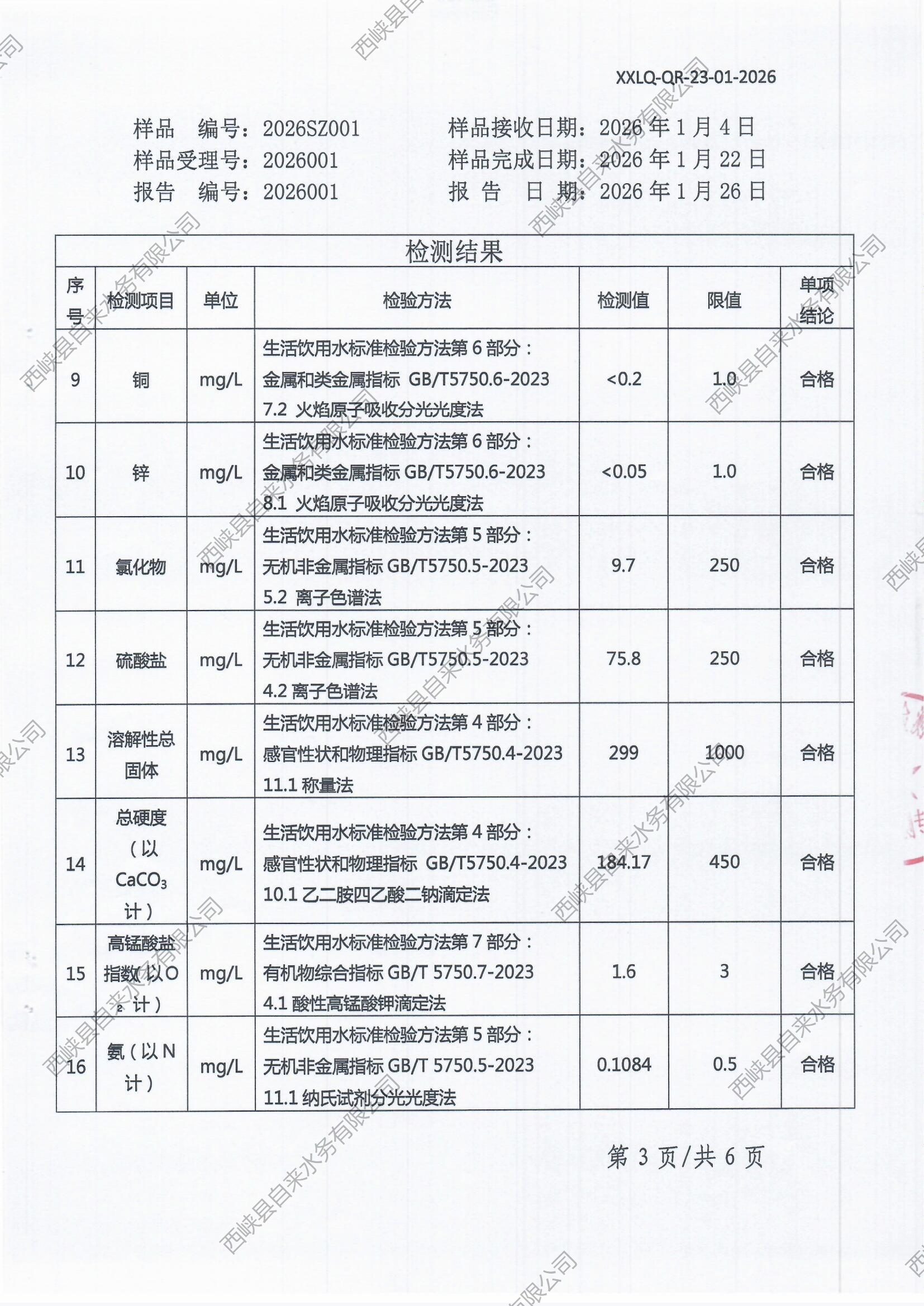 生活饮用水检测报告(出厂水)2026-01